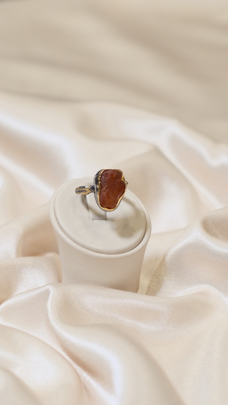Karnelyan yüzük,doğaltaş,metal aksam 925 ayar gümüş.