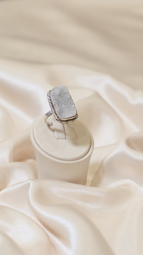 Kristal kuvars yüzük,doğlataş, metal aksam 925 ayar gümüş