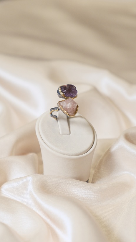 Pembe kuvars ametist yüzük,doğaltaş, metal aksam 925 ayar gümüş