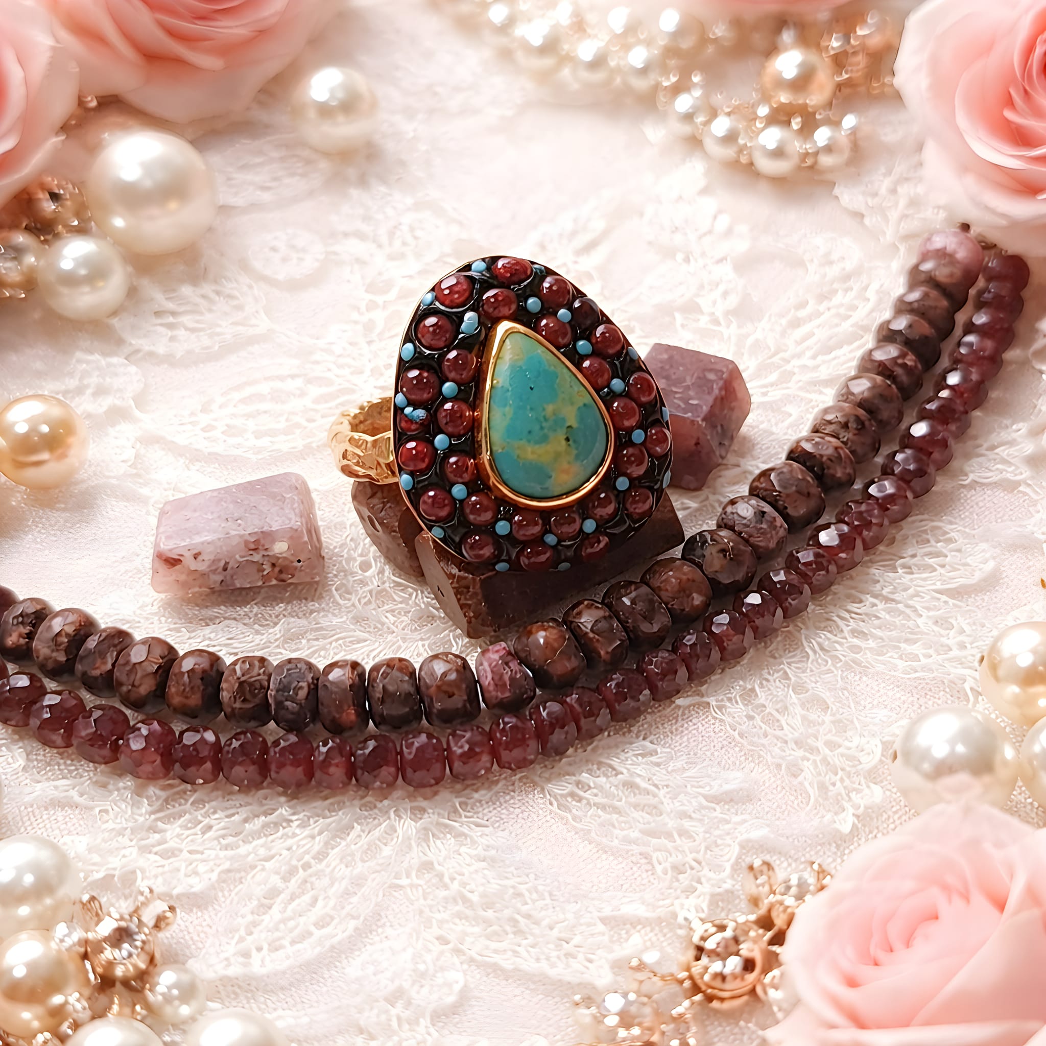 Turkuaz Yakut Yüzük, metal aksam 925 ayar gümüş.